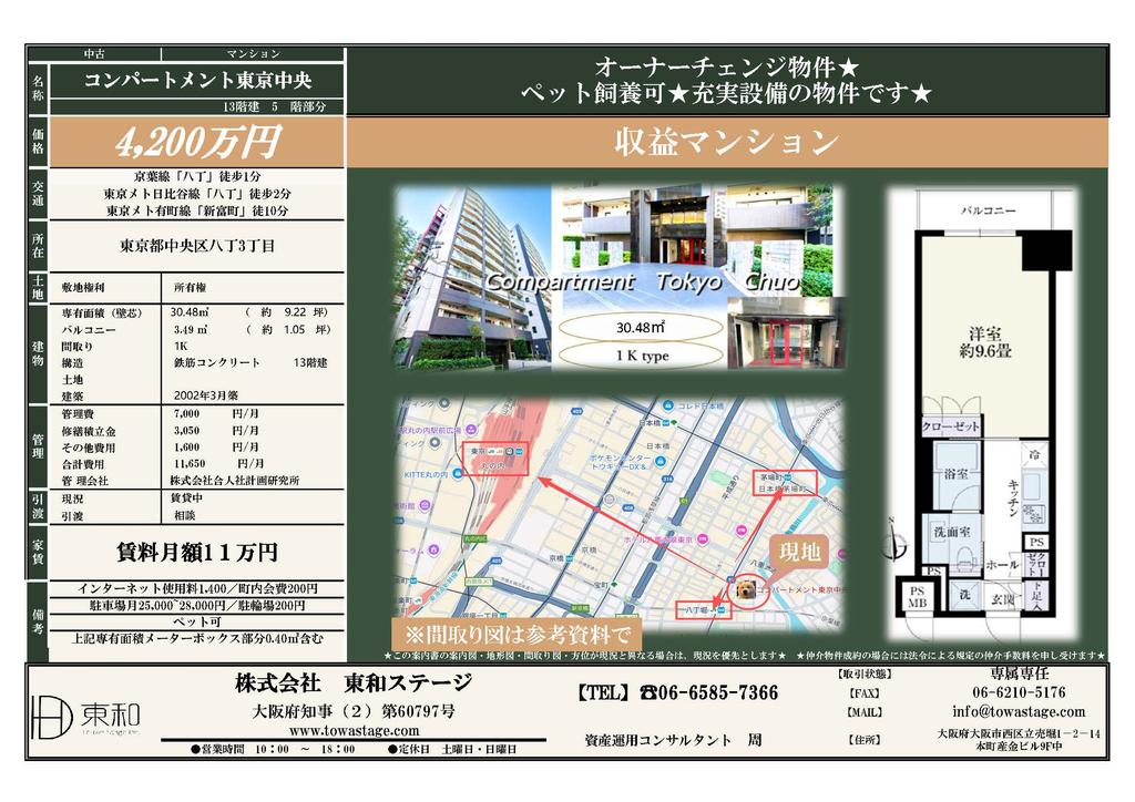 东京都中央区八丁堀投资公寓 1居室