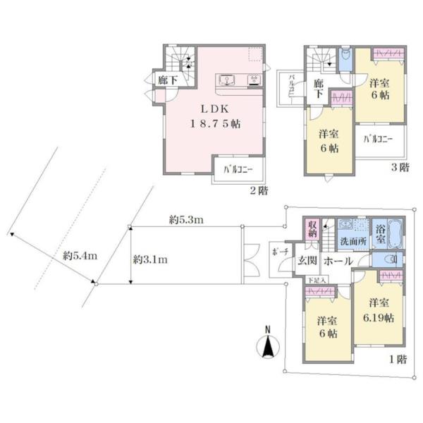 神奈川県川崎市中原区上丸子山王町自住一户建 3层4LDK